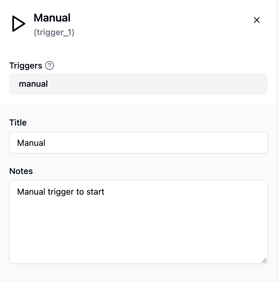 - The Manual Trigger activates the workflow